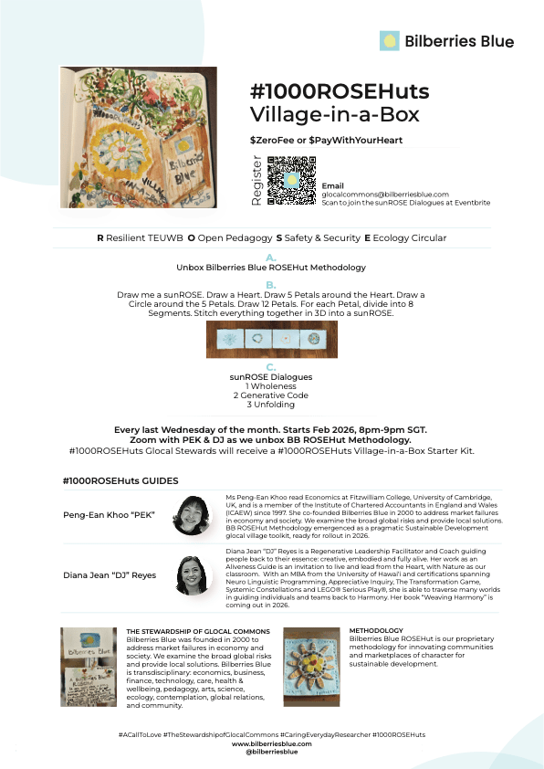 In 2026, the global rollout of Unboxing BB ROSEHut Methodology as a pre-requisite became necessary, and we formulated #1000ROSEHuts Village-in-a-Box, with starter-kits. The facilitation format was conceived as a 3-part sunROSE Dialogues: