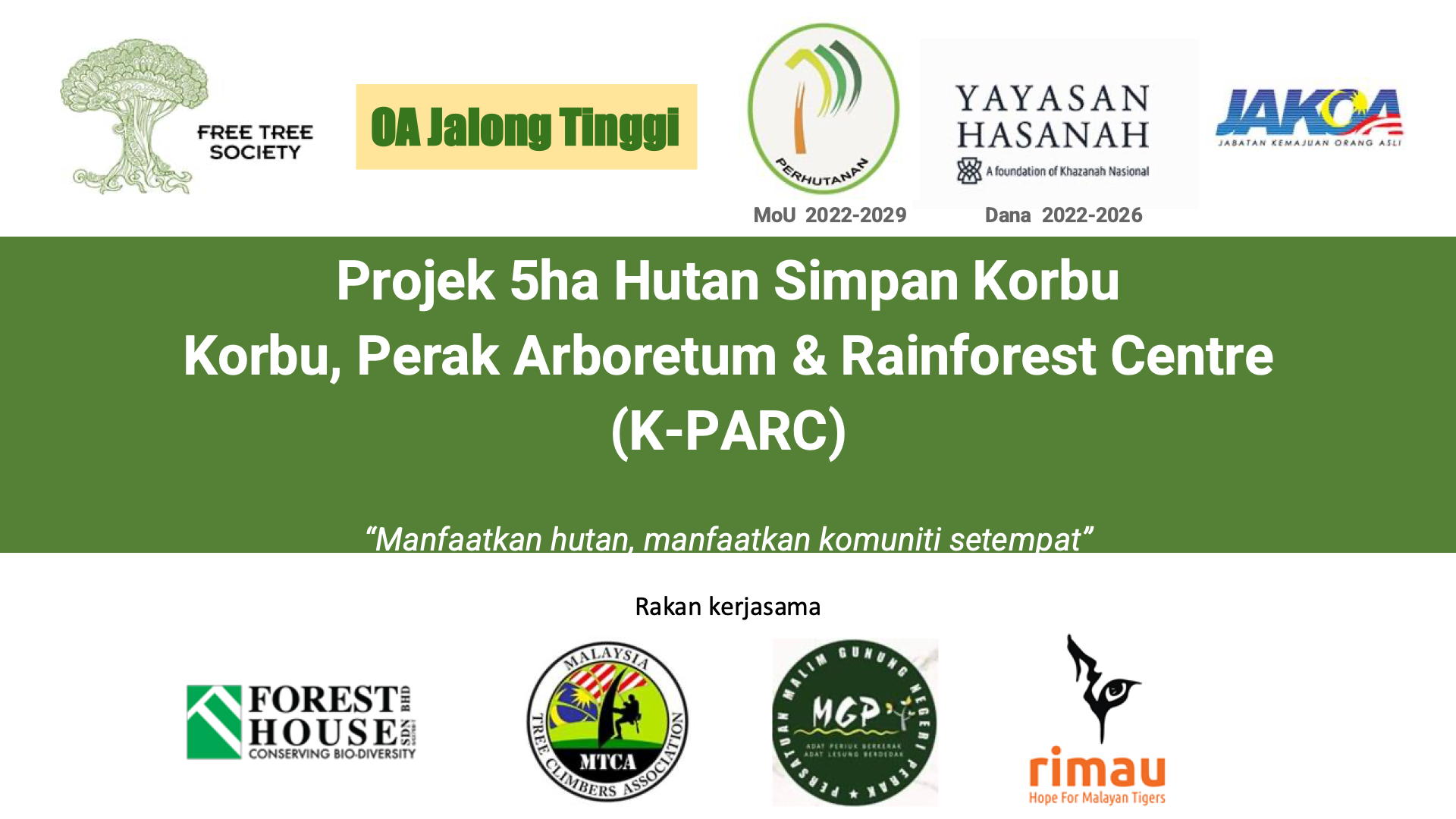 Currently, she leads major conservation initiatives at the Korbu Perak Arboretum & Rainforest Center (KPARC) project located in Hutan Simpan Korbu in Jalong Tinggi, Sg Siput.