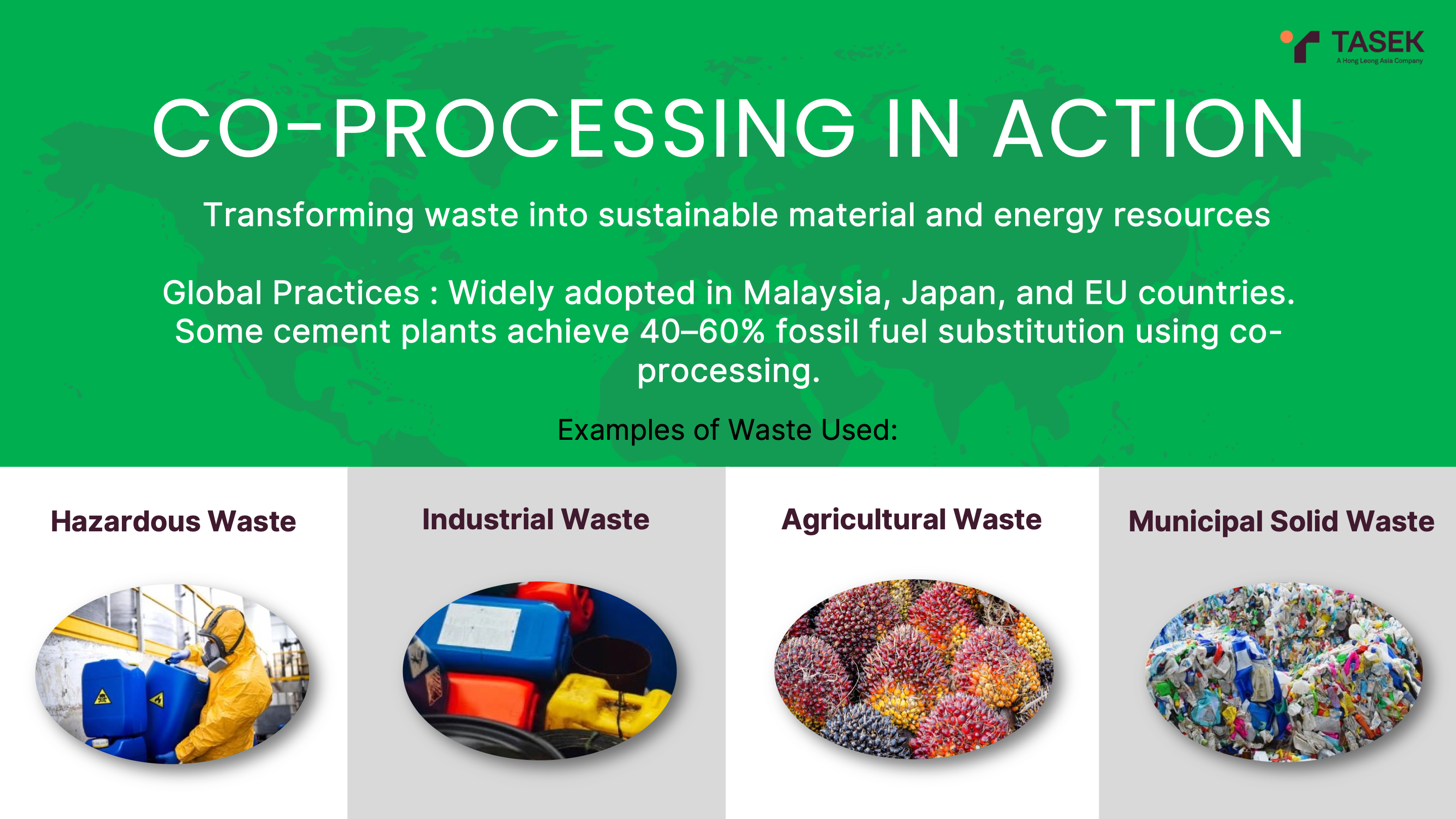Vicky Lee is a Certified Professional Technologist (Green Technology) with over 17 years of experience in waste management and treatment. As Group General Manager of Industrial Ecology at Tasek Corporation Berhad, she leads the development and implementation of sustainable waste management strategies, with a strong focus on co-processing as a circular, low-carbon solution.