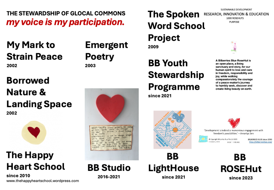 “The root of the disconnect in the Anthropocene is human estrangement (ref Small is Beautiful-EF Schumacher), from within ourselves, each other and with nature. So our focus, critical response and determination is to restore this, so that we dare to love again.” – Peng-Ean Khoo